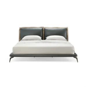 Nothing embodies true class and pure sophistication in modern design like our bed. From the detailed brushed stainless steel feet and side rail accents to her contemporary bright white genuine leather adjustable headboard and matching leatherette sides, make all of your design dreams come true. Mattress sold separately. Includes pre-assembled folding slatted mattress platform support.