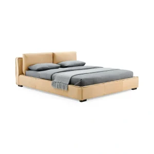 Nothing embodies true class and pure sophistication in modern design like our bed. From the detailed brushed stainless steel feet and side rail accents to her contemporary bright white genuine leather adjustable headboard and matching leatherette sides, make all of your design dreams come true. Mattress sold separately. Includes pre-assembled folding slatted mattress platform support.
